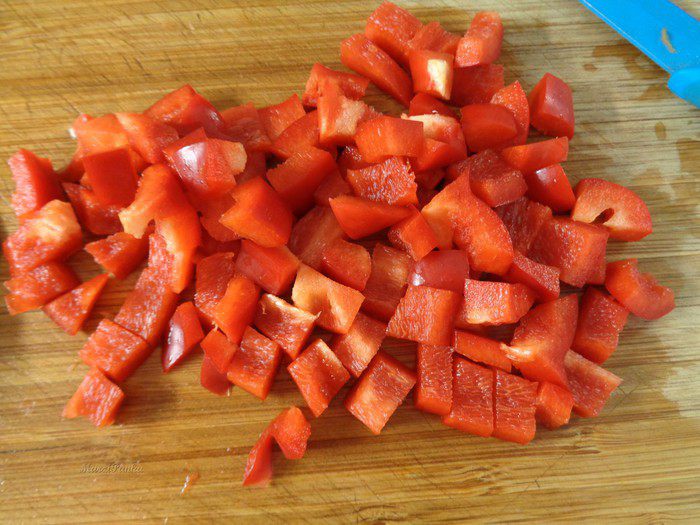 Болгарский перец очистить и порезать кубиком.