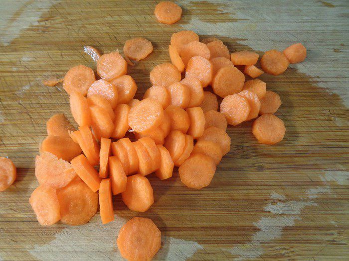 Морковь порезать кружочками.