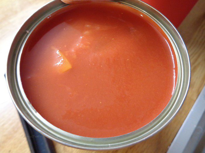 Добавить в суп полбанки помидор (у меня порезанные, в собственном соку). Дать закипеть.