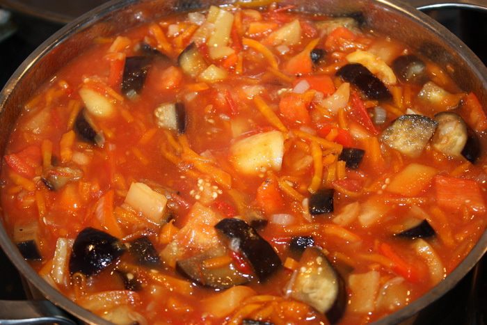 Салат из болгарского перца с баклажанами в остром кисло-сладком соусе