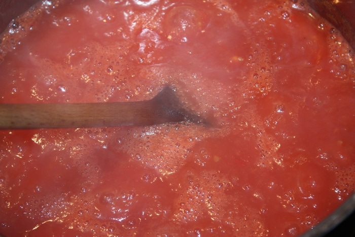 Помидоры очищаем от кожуры, пропускаем через мясорубку, или натираем на терке, или режем на кубики. Пробиваем блендером, доводим до кипения и вливаем пюре из алычи.