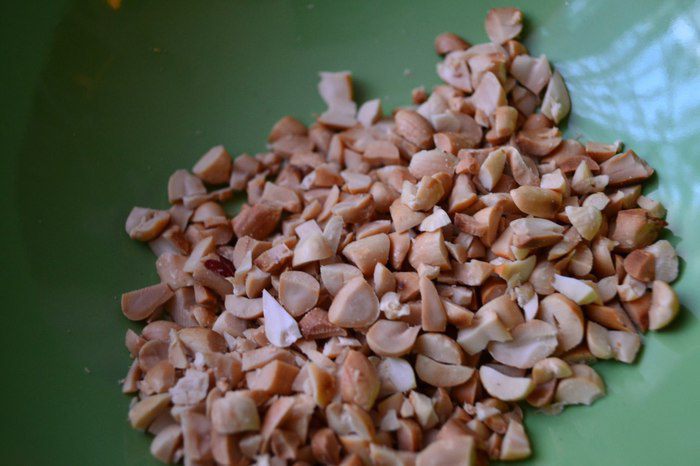 У меня декором послужили голубика и ореховые козинаки из арахиса. Арахис я обжарила, почистила, порубила.