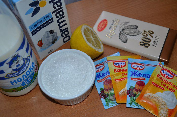 В кастрюлю наливаем сливки и ставим на средний огонь, доводим до кипения, добавляем цедру. После снимаем с огня. Добавляем шоколад, хорошо перемешиваем. Теперь нам нужно добавить в эту смесь желатин и размешать, пока желатин не растворится.