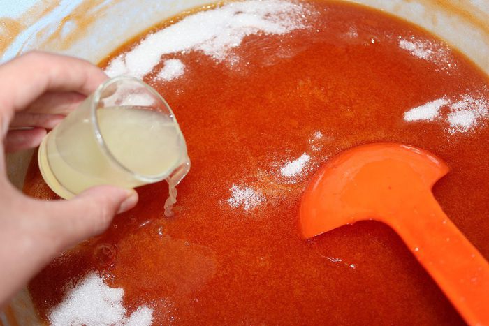 Затем добавляем оставшийся сахар, сок лайма и варим еще 10 минут.