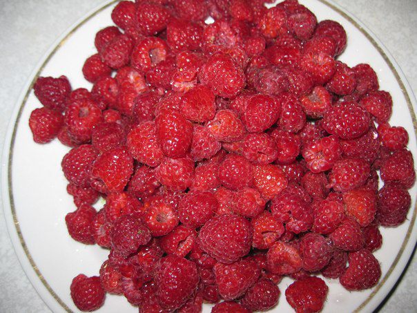 Перебрать, помыть малину. Положить на сито,чтобы стекла вода. Пару ягодок оставить для украшения.