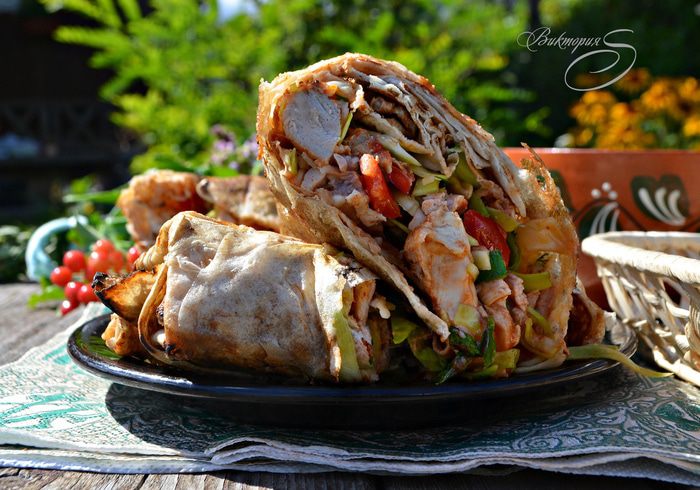 Предлагаю вам приготовить дачный вариант шаурмы. Вкусно, сочно, с запахом дымка - замечательный вариант для посиделок на свежем воздухе! Угощайтесь!