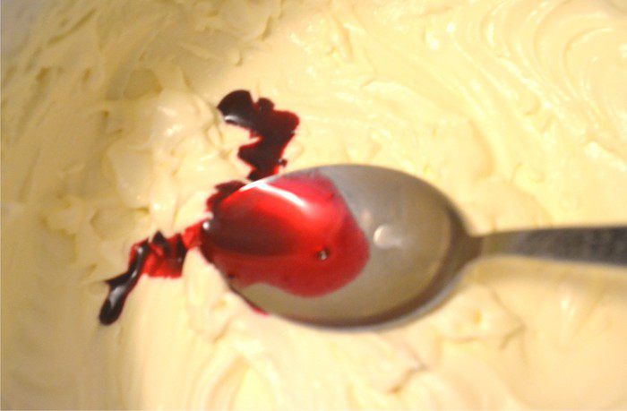 Загодя я отварила свеклу и выжила из нее сок. Добавив этот сок к крему мы получили красивый розовый цвет. Можно менять насыщенность, добавляя разное количество сока.