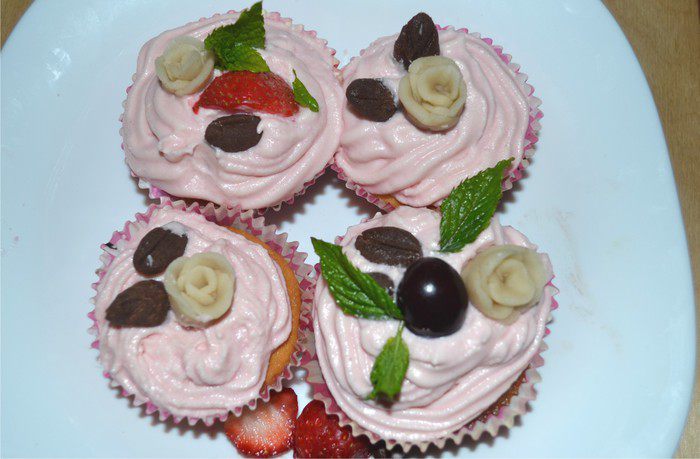 Ну вот теперь самое интересное. Украшаем наши капкейки с помощью кондитерского шприца, выдавливая крем. А дальше полет фантазии, можно с ягодами, фруктами, орехами ти т.д. Как душе угодно. Приятного аппетита!