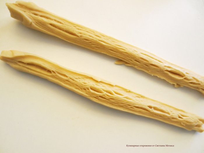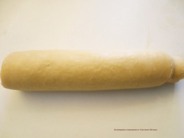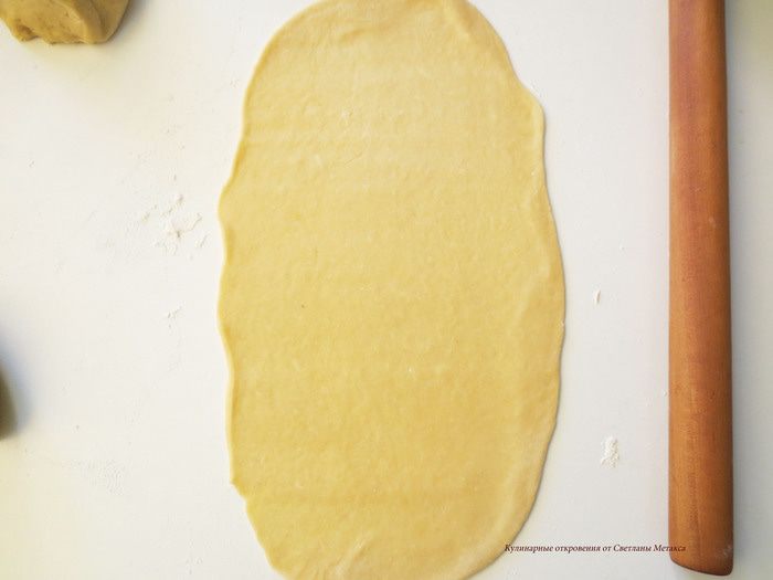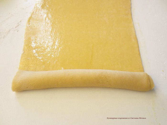Теперь руками раскатать его, слегка вытягивая в стороны. Длины рулета должна увеличится на 20 см.