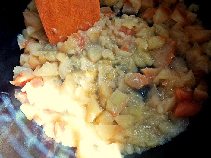 Иногда можно открыть и перемешать лопаткой. После тушения пробить блендером, но мой сгорел, протирала в итоге через сито.