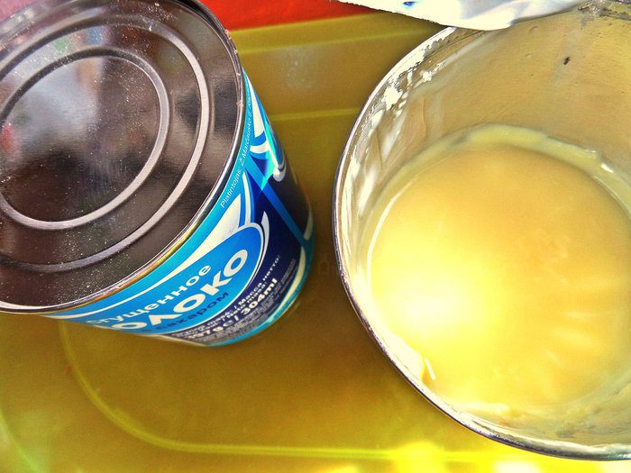 Я использовала только сгущёнку, но можно заменить часть сахаром.