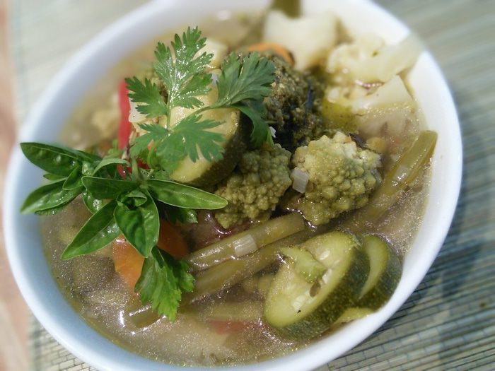 При подаче минестроне положить в тарелку ложечку песто. Приятного аппетита!