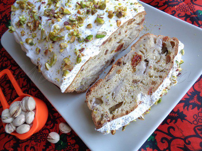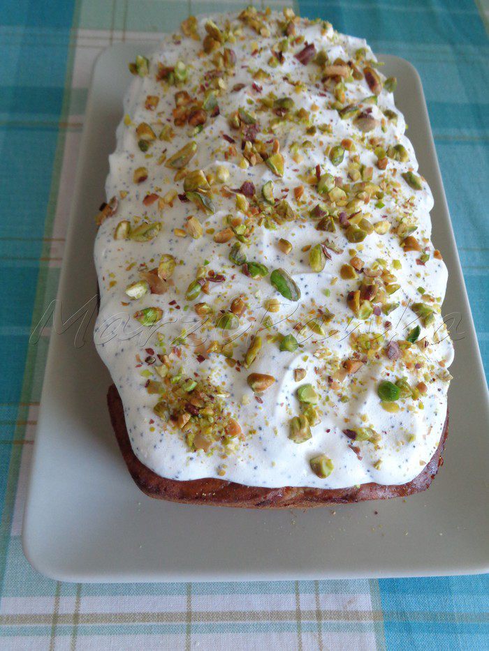 Бананово-фисташковый кекс под молочно-маковой глазурью