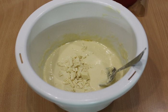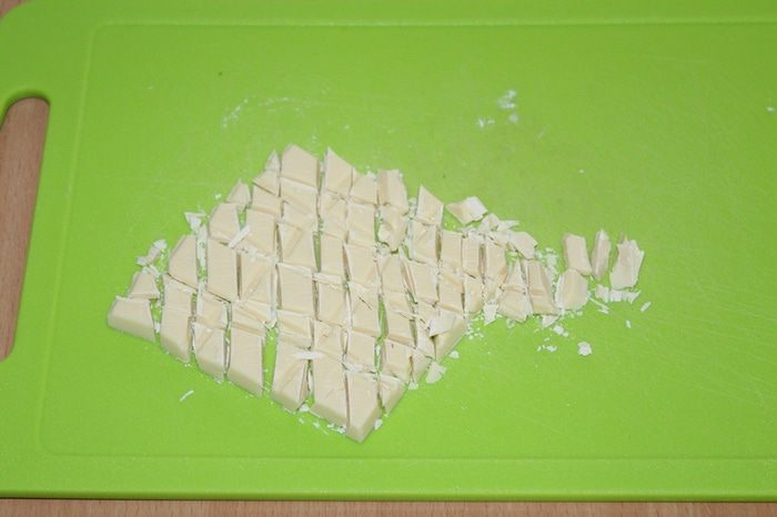 Измельчите белый шоколад.
