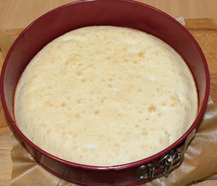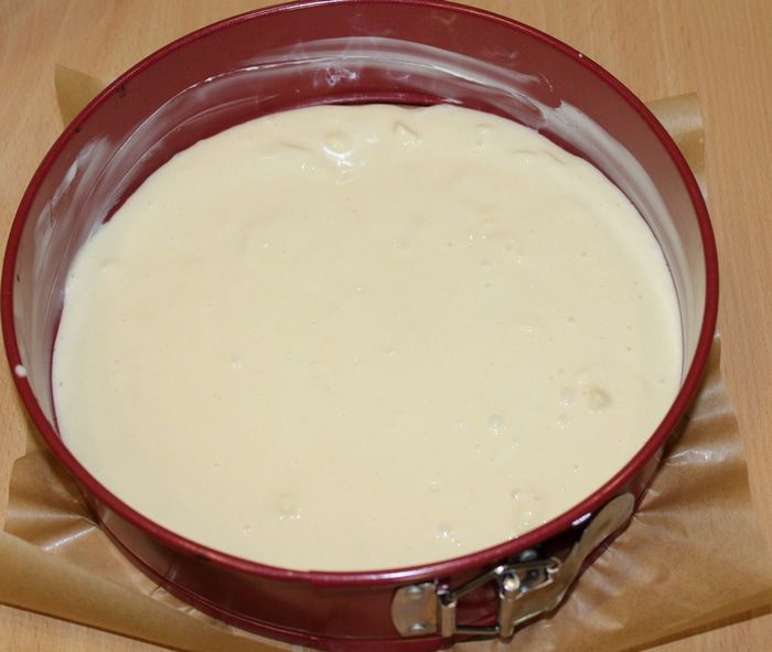Замесите тесто и выложите его в предварительно смазанную форму для выпечки диаметром 24 см.