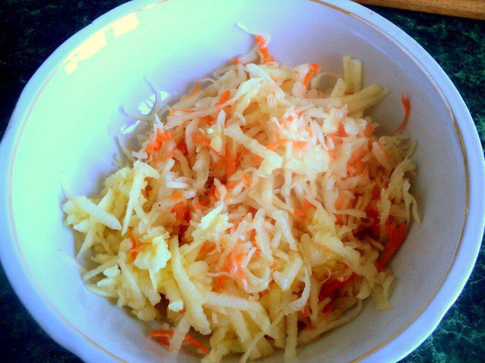 Капусту необходимо брать белокочанную круглой формы, ни в коем случае не приплюснутую, сорта «Амагерка», она не такая сочная. Морковь натереть на терке.