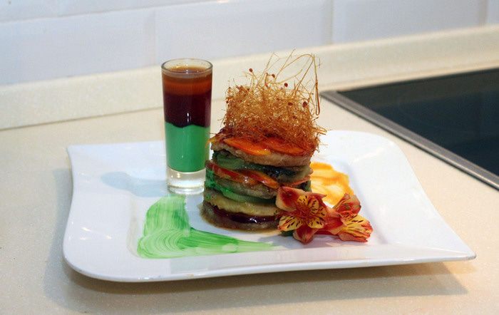 Варим сахар, постоянно помешивая, до образования карамели. На поверхность, выложенную пекарской бумагой, разбрызгиваем немного схватившуюся карамель (она должна быть тягучей), горизонтальными движениями, для образования нитей (запутанные нити).
