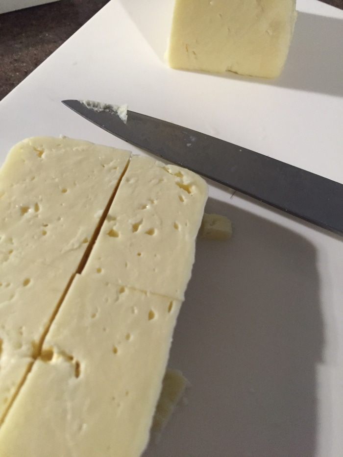 Сулугуни режем на кубики и складываем в блендер.