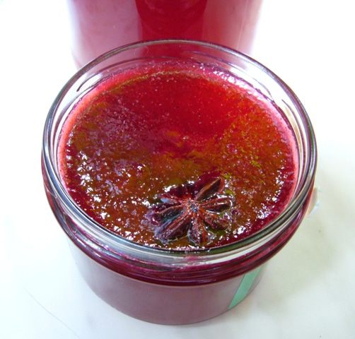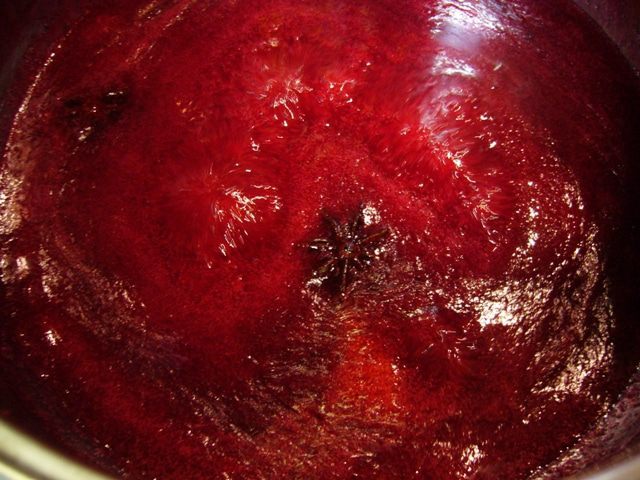 В сок добавить сахар и бадьян, довести до кипения и варить 7 минут.