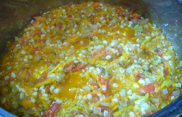 Поставить емкость с овощами на огонь, дать закипеть, тушить под закрытой крышкой на небольшом огне 1 час.