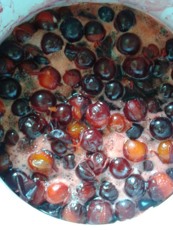 Кипятить до того момента, когда лопнет кожица и косточки отойдут от мякоти (у меня это заняло 3- 4 минуты)