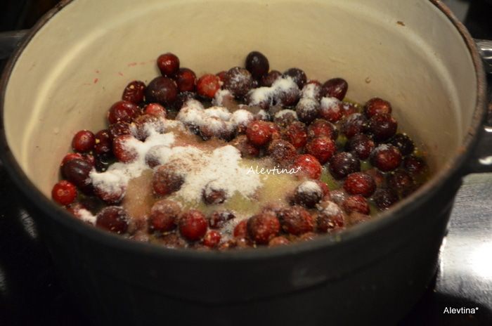 Готовить на медленном огне, как ягода полопается вся, добавить ром или бурбон. Попробуйте соус, если он для вас кислый слишком, добавьте еще сахара, но немного, чтобы соус не был приторно сладким. Снять с огня.