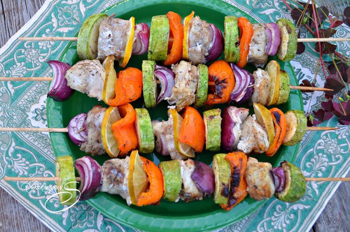 (20 мин) деревянные шампуры. Выложите подготовленные шампуры (брошеты) на блюдо, полейте маринадом и поставьте на 30 мин в прохладное место.