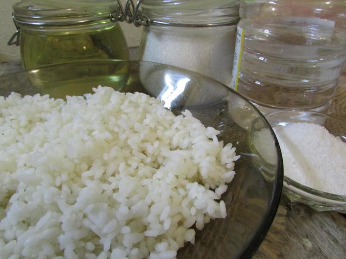 Рис отварить до полуготовности. Подготовить соль, сахар, столовый уксус.