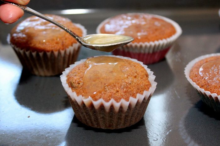 Затем добавить муку, разрыхлитель, соль и мускатный орех. Перемешать, чтобы получилось однородное тесто. Подготовить формочки для маффинов, смазать их маслом. Разлить тесто по формочкам. Выпекать в заранее разогретой духовке при 180 градусах около 25 минут. Как только маффины готовы, вынуть их из духовки и полностью охладить. И только потом вынуть из формочек.
