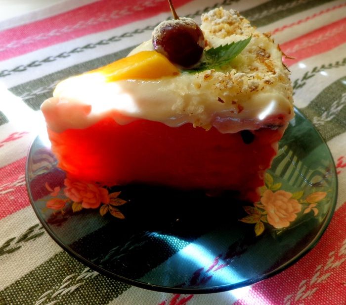 В почти сорокаградусную жару хочется на десерт чего-то легкого и холодного. И мой "тортик" как нельзя лучше может удовлетворить это желание!