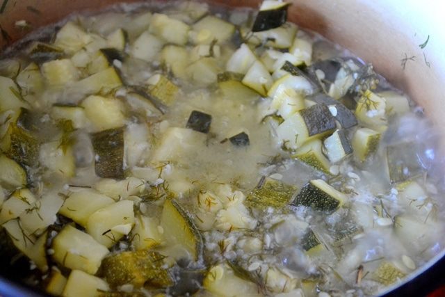 Провариваем салат от момента закипания минут 40 - кабачки должны стать мягкими и изменить цвет.