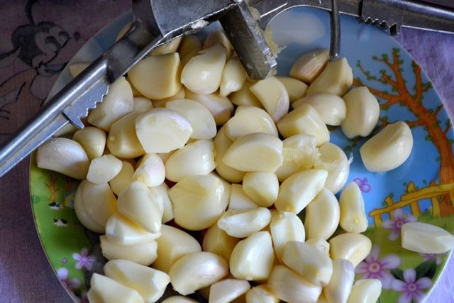 Начищаем много-много чеснока.