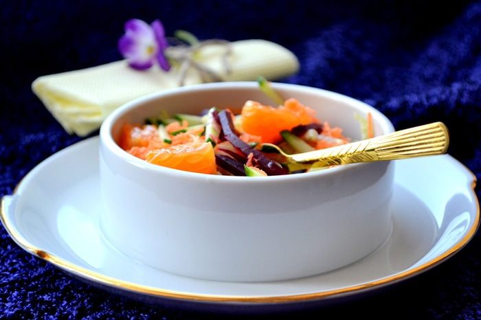 Так как сегодня свежие фрукты и овощи доступны внесезонно, такой яркий салат можно готовить круглый год.