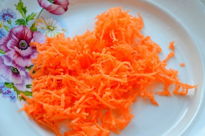 Натираем морковь, нам нужно ее полстакана.