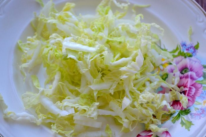 Мелко нарезаем пекинскую капусту.