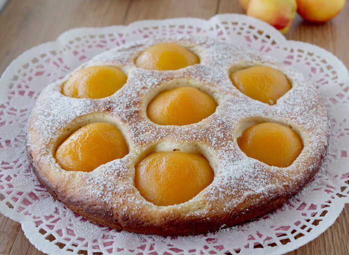 Я очень люблю тесто для пирогов с добавлением творога,а еще лучше с мягкой рикотты — она дает приятную структуру и сливочный вкус. Этот пирог очень вкусный, с приятной сахарной корочкой и нежными сочными персиками. Персики можно использовать как свежие, так и консервированные.