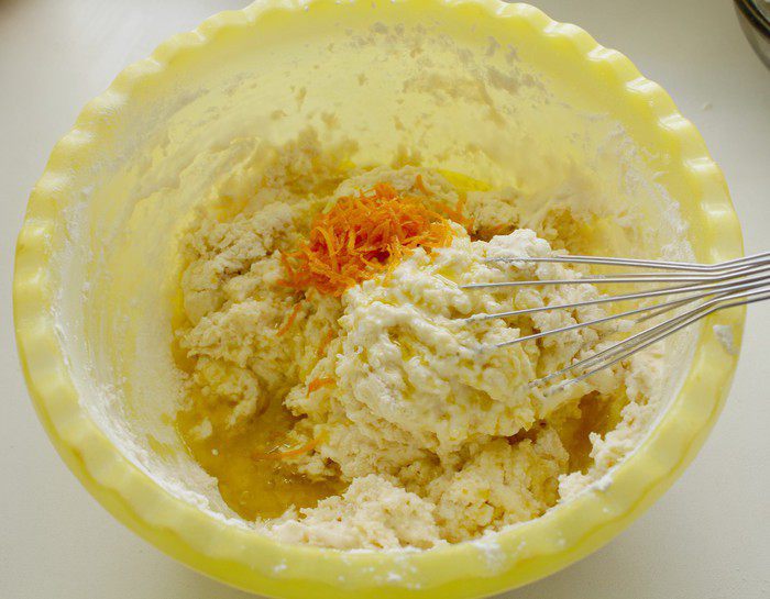 Добавьте оливковое масло, цедру и снова аккуратно перемешайте.