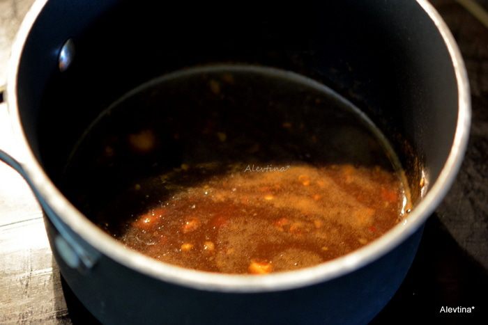 Маринад перелить в кастрюльку и готовить на среднем огне примерно 10 мин, помешивая.