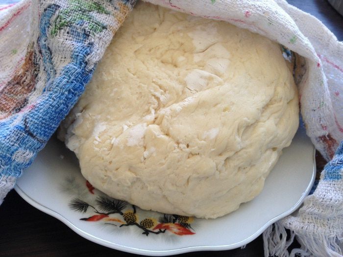 Выложить тесто на доску или тарелку, накрыть полотенцем и дать согреться 10-15 минут.