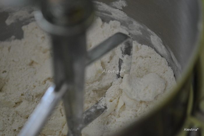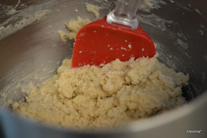 Приготовим биксвит. Смешать муку, разрыхлитель, соль, сахар, ваниль со стручка в кухонном комбайне или процессоре насадка ножи или весло. Затем добавить сливочное холодное масло кусочками. Взбивать до крупной крошки.