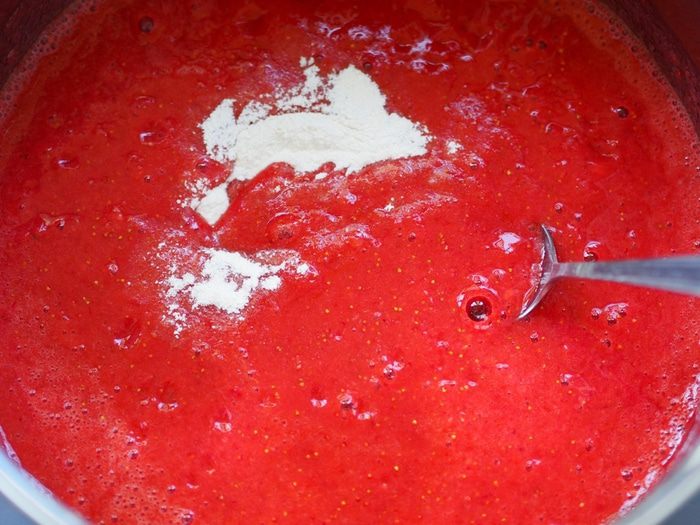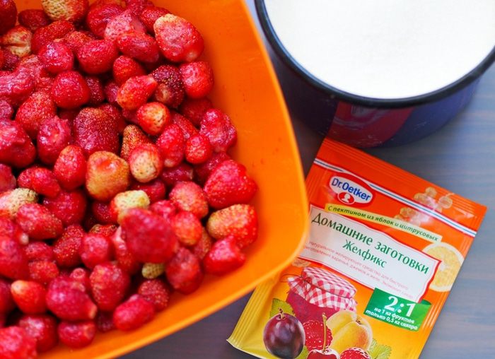 Содержимое пакетика "Желфикс" смешать с 2-3 столовыми ложками сахара, и только потом, всыпать в посуду с измельченной ягодой и хорошенько размешать. Постоянно помешивая, довести до кипения. Добавить оставшийся сахар, и опять же, постоянно помешивая, довести до кипения и варить еще 3 минуты. Снять с огня.