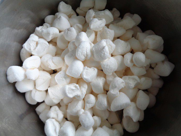 Маршмеллоу мелко порежьте и выложите в кастрюлю.