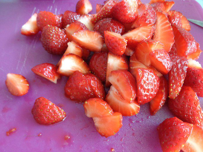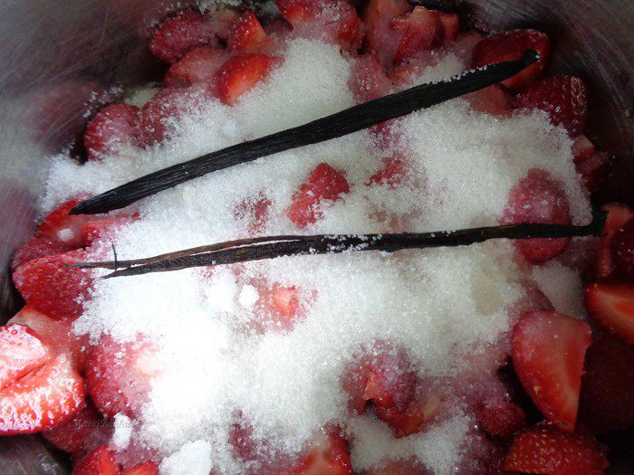 Мякоть и сам стручок смешайте с клубникой и дайте постоять 30 минут.