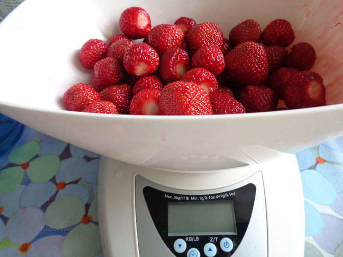 Клубнику почистить и взвесить.