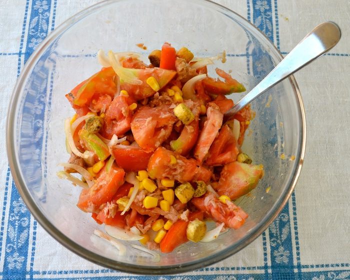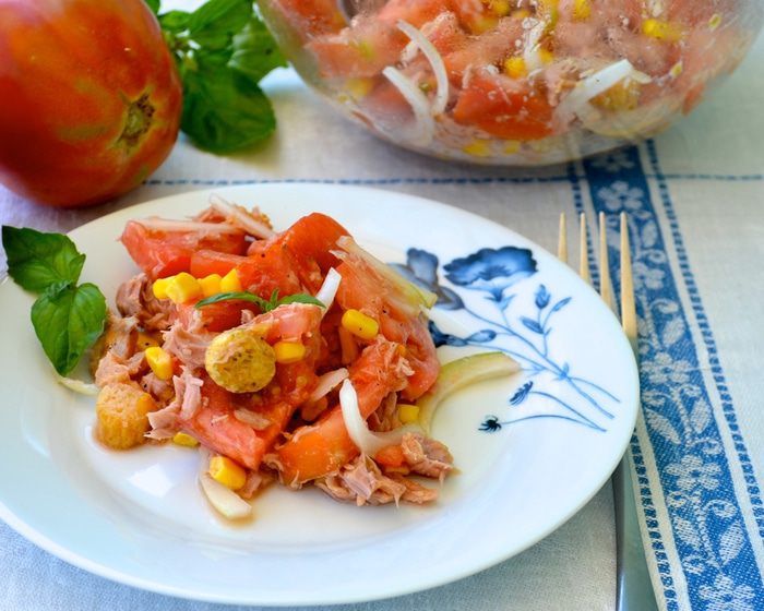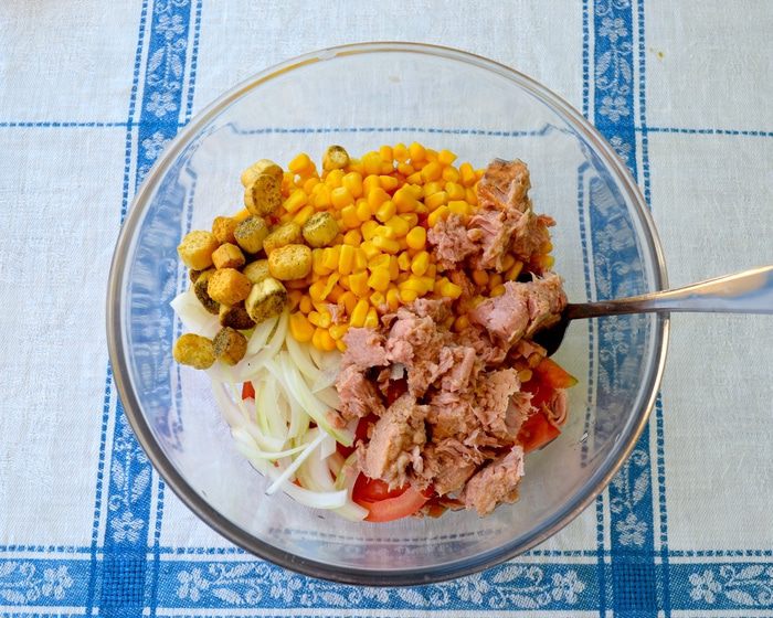 ...тунца и сухарики (у меня приготовленные с добавлением сухих ароматных травок).