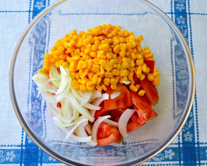 Следом выложить консервированную кукурузу...