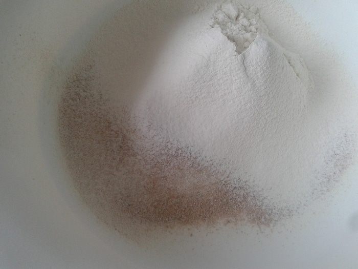 Теплую воду смешать с дрожжами и одной чайной ложкой сахару (у меня активные ), оставить на 10 минут, чтобы начали работать.