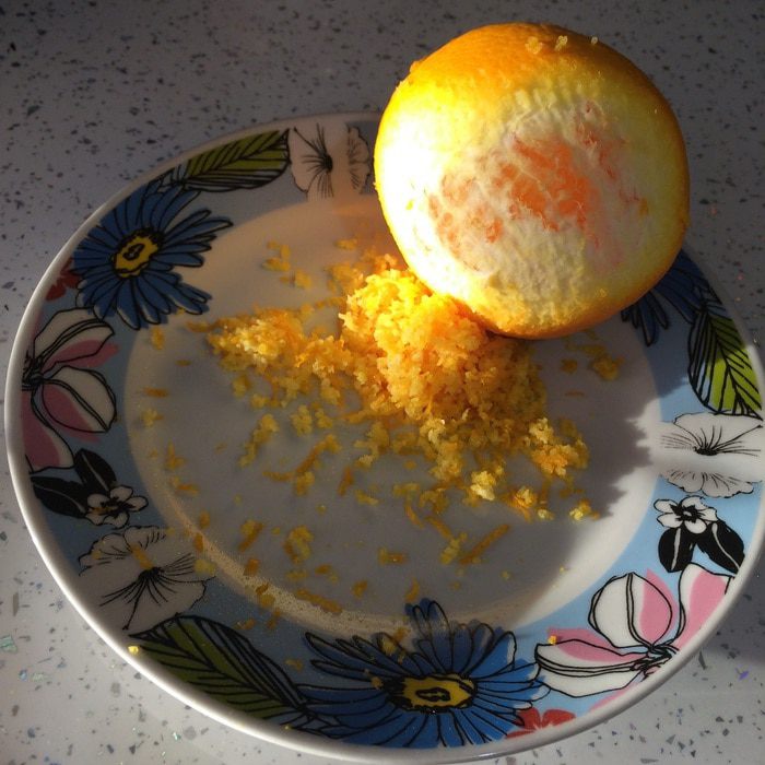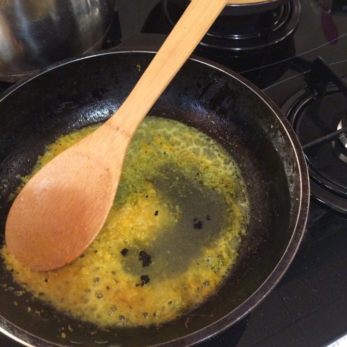 На сковороде слегка томим цедру на сливочном масле, добавляем сок апельсина, 5 ст. л. сахара, семечки ванили. Томим 3 минуты.