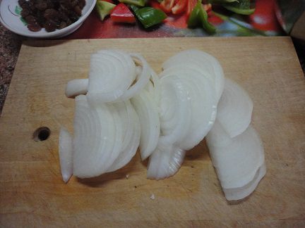 Лук нарезать тонкими полукольцами.