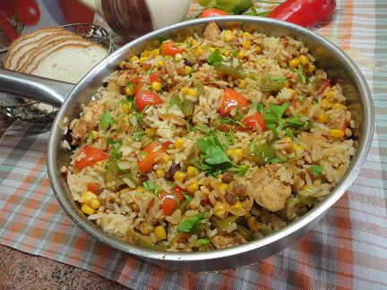 Рис с овощами и мясом индейки или курицы. Готовила и с тем и с другим мясом. Одинаково быстро, вкусно и сытно.